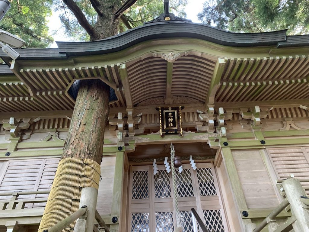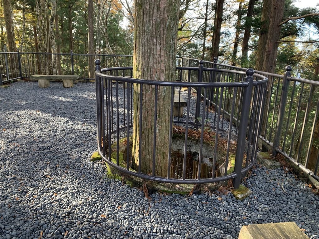 In front of the main shrine, they created a hole to protect the cedar tree without cutting it down.
