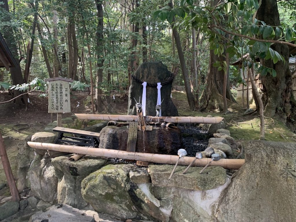 It is said that pouring water over the sacred stone brings joy to the deity, so I used a ladle to pour water and offered a prayer.