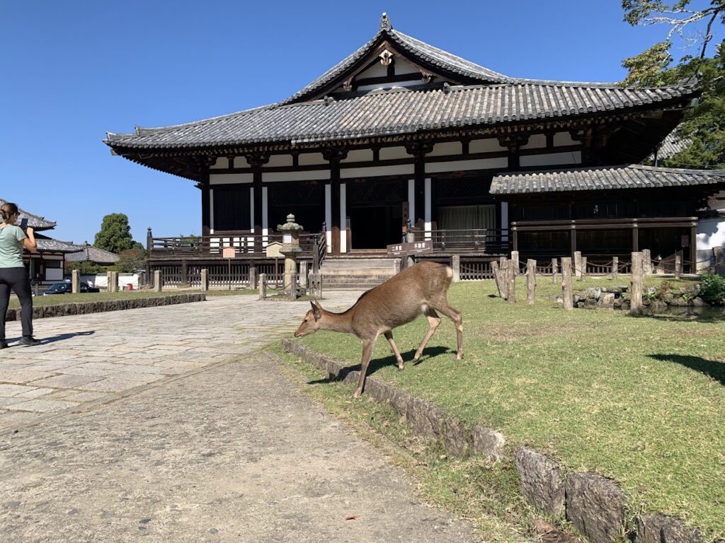 ③若草山のふもとから東大寺参道の方に下ります。途中に、「奈良春日野国際フォーラム甍(いらか)」がありますので、休憩を兼ねて、庭園を見るのも楽しいです。