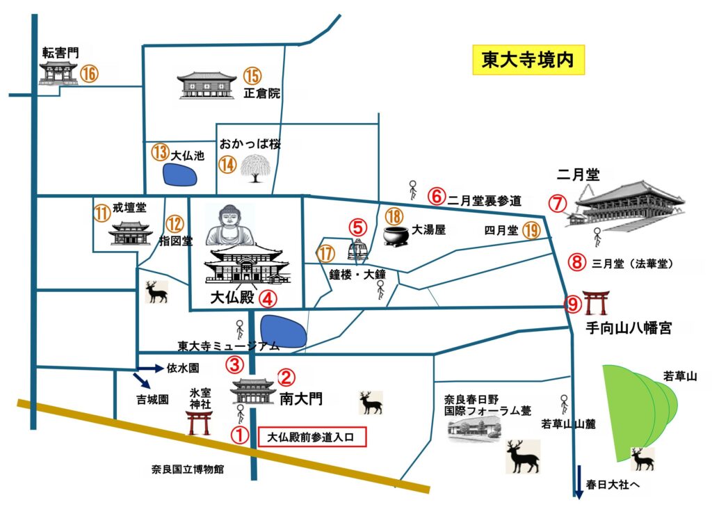 一般的な、大仏殿から二月堂・手向山八幡宮への歩き方ガイド