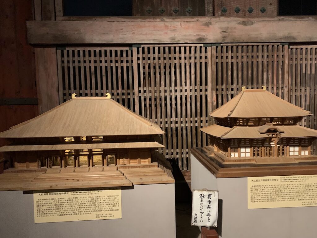 模型を通して、東大寺の歴史的背景や建築の変遷を感じ取ることができる貴重な展示です。ぜひ足を止めて、じっくりと見比べてみてください。
