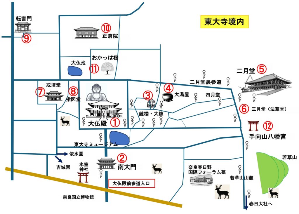 奈良を代表する世界遺産・東大寺。大仏殿を中心に、南大門や二月堂、正倉院など歴史と自然が調和する見どころを13スポットに絞って、写真つきで読みやすくまとめました。初めての方もリピーターも、回り方と見逃しポイントを短く押さえておけば効率よく楽しめます。詳しい歩くコースは記事内の「東大寺や大仏殿の歩き方」をご覧ください。
