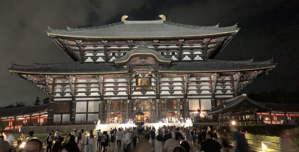 令和7年8月に行われた「東大寺夜間参拝」では、大仏殿や大仏さまがライトアップされました。