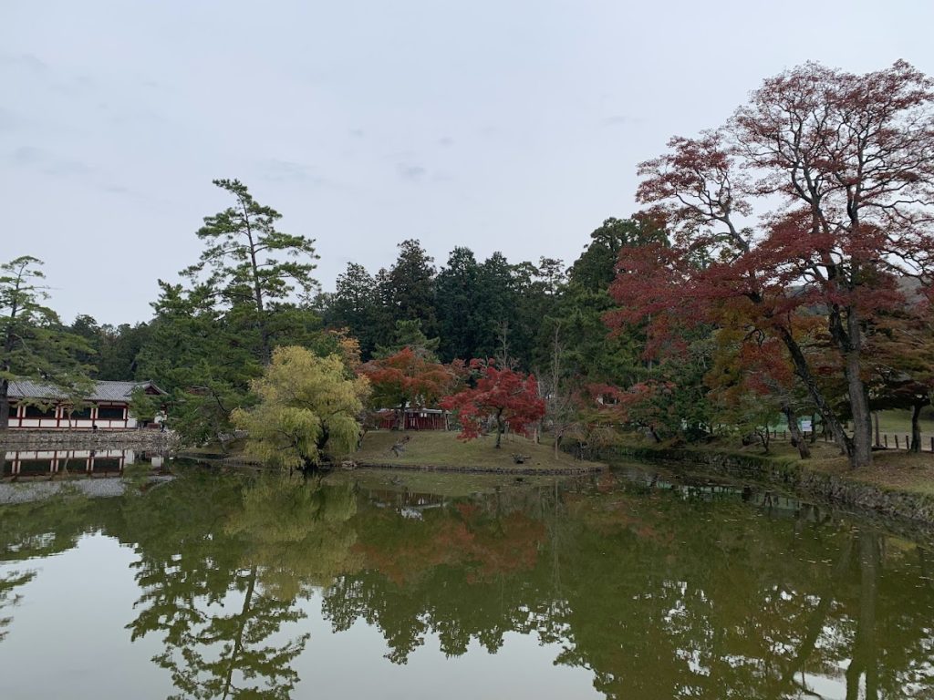 大仏殿の前に広がる「鏡池」は、四季折々の景色を映し出し、特に紅葉や桜の季節には美しい風景が楽しめます。