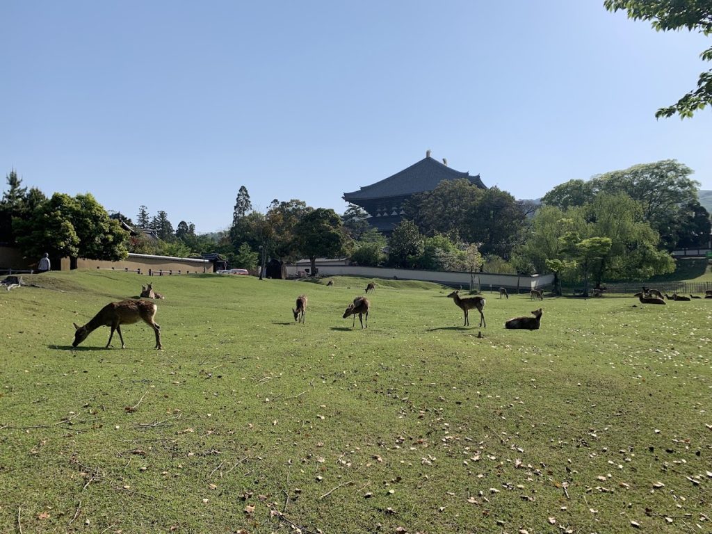 大仏殿の西側に回ると、きれいに食べ揃えられ芝生が広がっています。