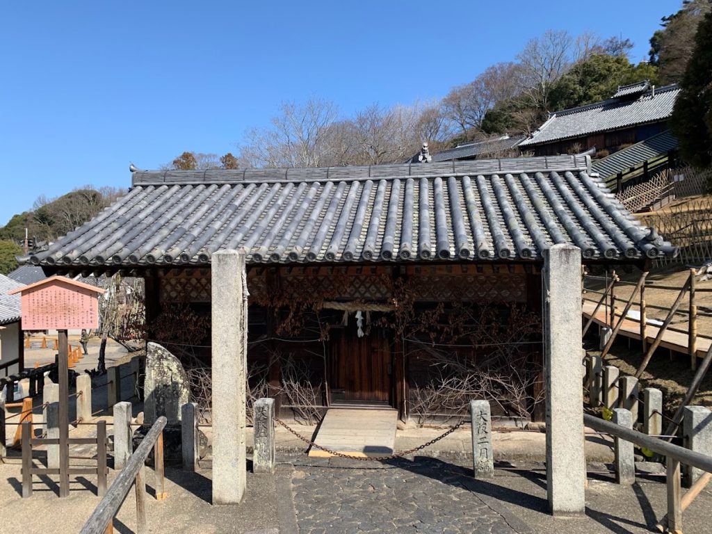 菅原道真公は、898年の秋に、宇多上皇のお供で、手向山八幡宮に参拝しています。その際に、この石に腰をかけて、もみじの紅葉をながめたと言われています。