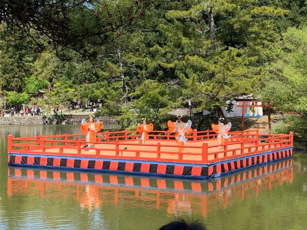 (令和5年の)この日、大仏殿前の鏡池では、雅楽が奉納されました。