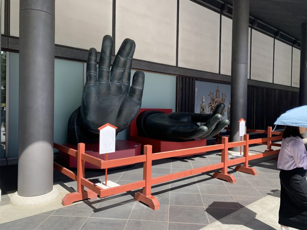 大仏さまの手と同じ大きさのモニュメントが展示されています。訪れた人々が思わず写真を撮りたくなる人気のスポットです。