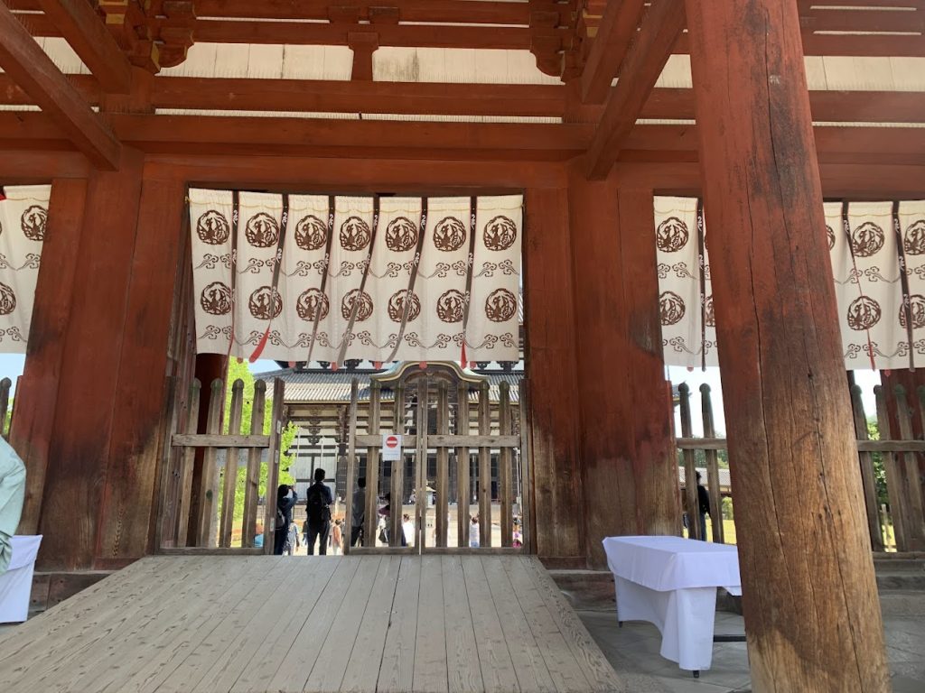 門の内側から、平城京の方(西の方向)を向いて撮影しました。