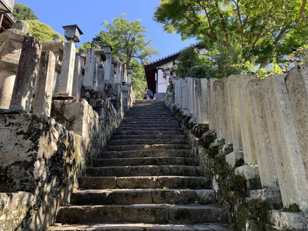 中世には多くの人が、大阪を早朝に出発し、生駒山山頂の南側(写真では左側)の暗峠(くらがりとうげ)を越えて、奈良町(猿沢池周辺)で宿泊しました。そして、翌日は南に位置する長谷寺(桜井市)に、またその先に続く伊勢街道を歩いて「伊勢神宮」までお参りに行きました。
