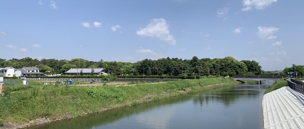 秋篠川と唐招提寺遠景