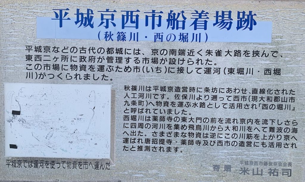 下流にある平城京西市の船着き場の案内板