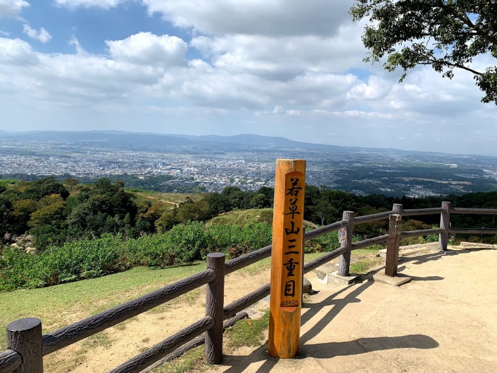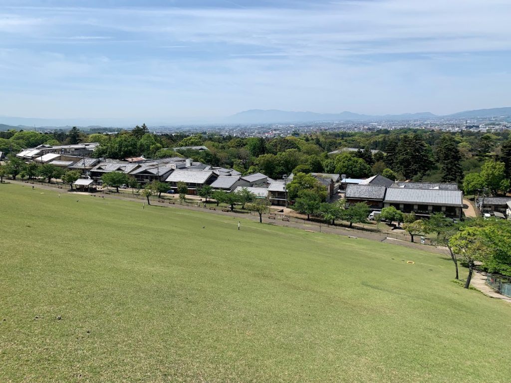 At the third stage of Wakakusa-yama Mountain, you can see the Kasuga-yama Primeval Forest in the distance.