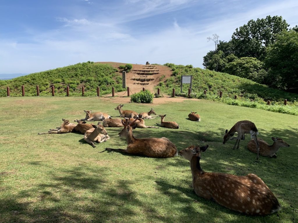 At the summit of Wakakusa-yama Mountain, I was greeted by many deer.