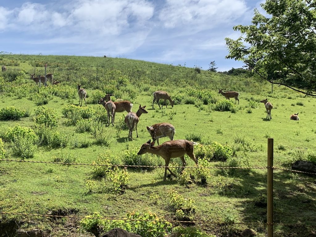 The deer help keep the grass neatly trimmed, and not just the grass—they also eat the leaves of trees up to two meters high.