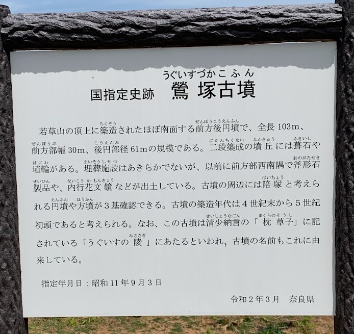 At the summit, there is the “Uguisuzuka,” a keyhole-shaped tomb mound.