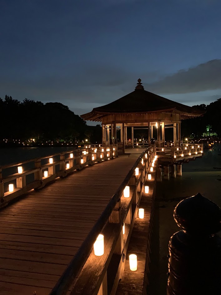 This is a scene from the Toka-e Festival in August. The Toka-e is held annually throughout Nara Park from early August until August 14th.