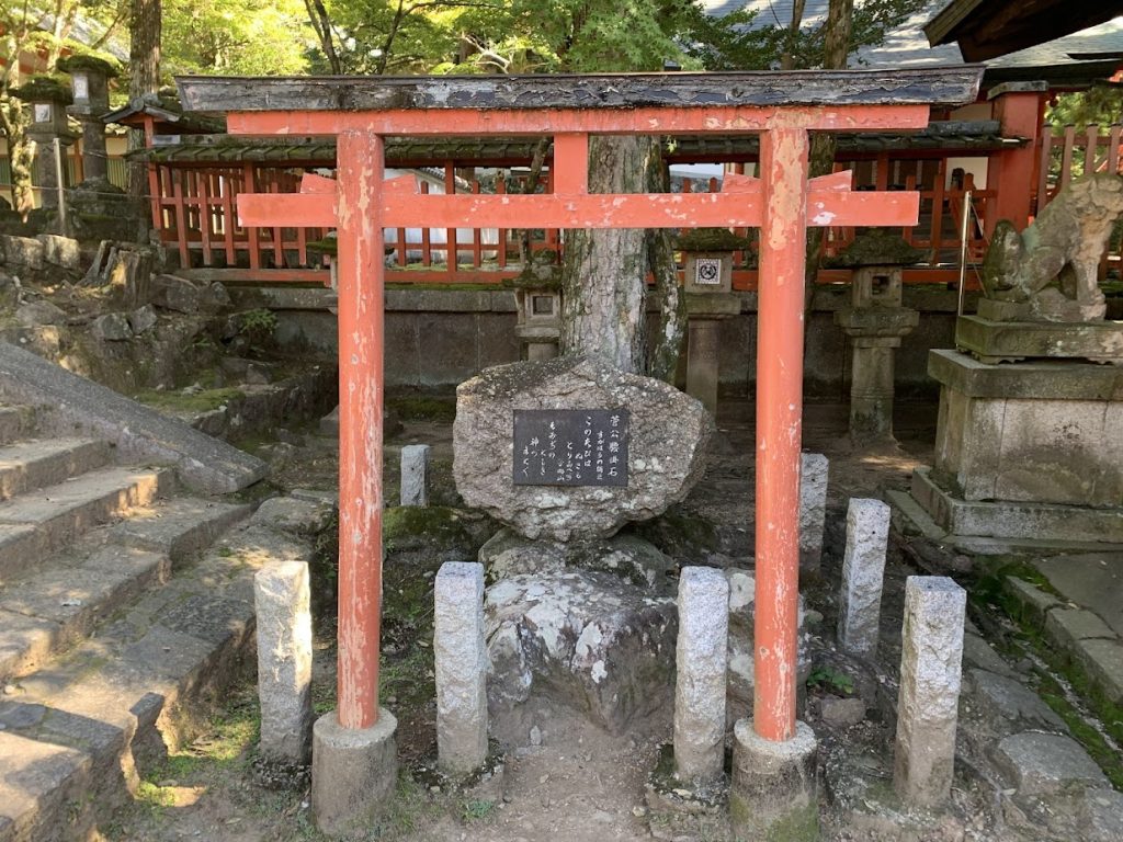 It is said that during this visit, he sat on this stone and admired the beautifully colored momiji (Japanese maple leaves).